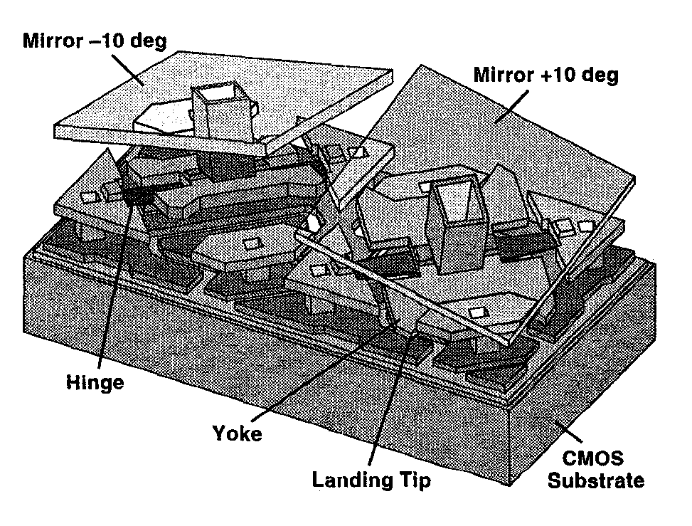 Hornbeck, Larry J. “Digital light processing and MEMS: An overview.” Digest IEEE/Leos 1996 Summer Topical Meeting. Advanced Applications of Lasers in Materials and Processing. IEEE, 1996. ↩